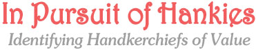 In Pursuit of Hankies, learn the art of distinguishing valuable collectibles from imposters, as we sort through stacks of vintage hankies together. You and your guests will learn to identify the era and embellishments of cherished hankies inherited